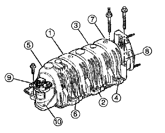 6. Install the upper intake manifold bolts (1-10).