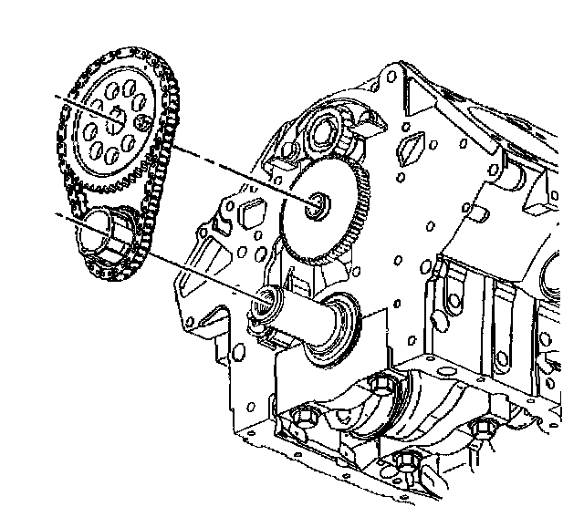 9. Assemble the timing chain on the sprockets with the timing marks as close together as possible.