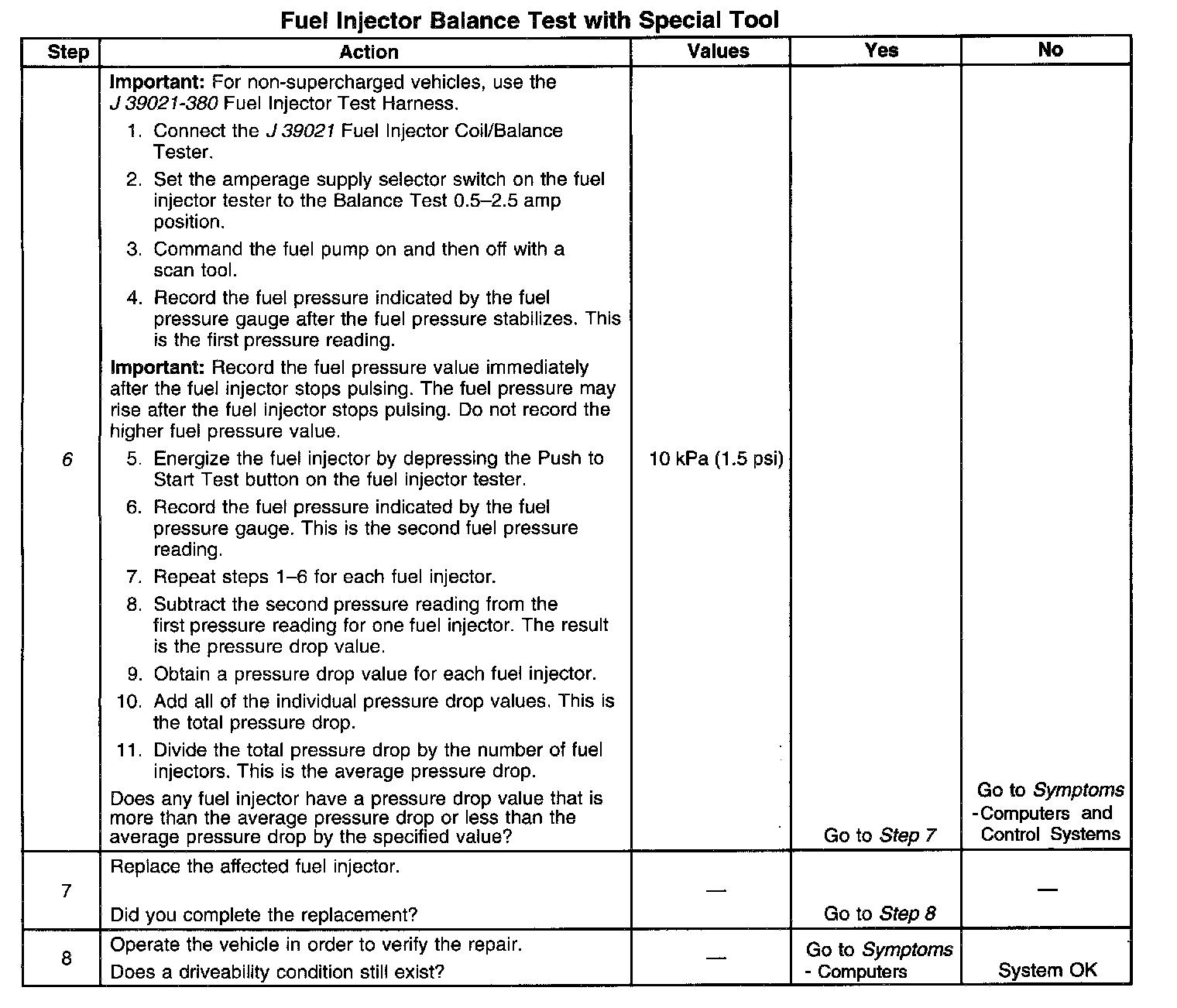 Fuel Injector Balance Test Example (Typical):