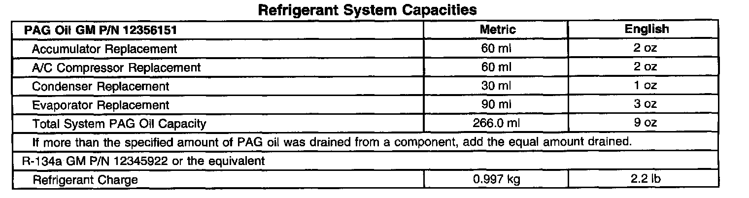 Refrigerant System Capacities: