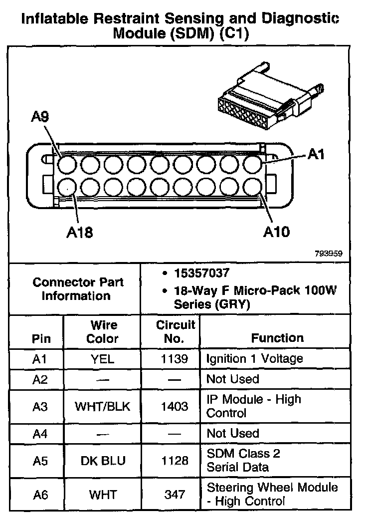 Inflatable Restraint Sensing And Diagnostic Module (SDM) (C1) Part 1: