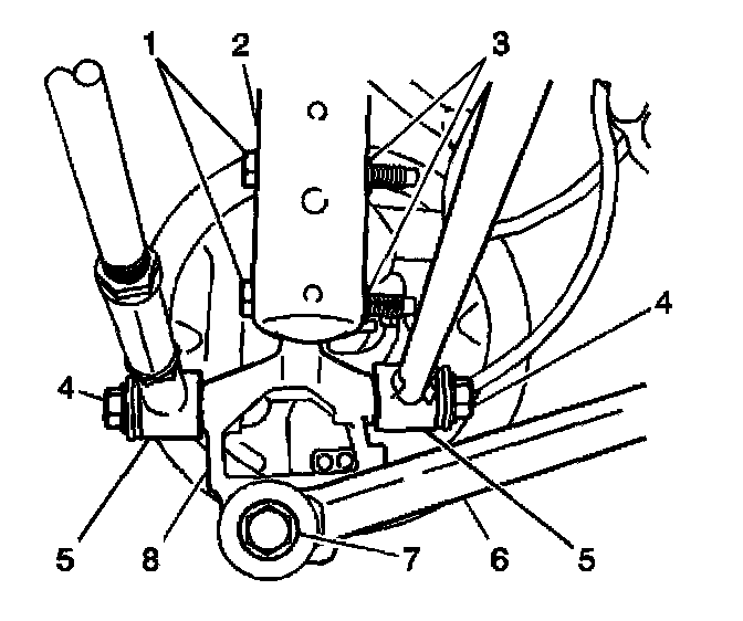 6. Remove the trailing arm (6) from the knuckle (8).