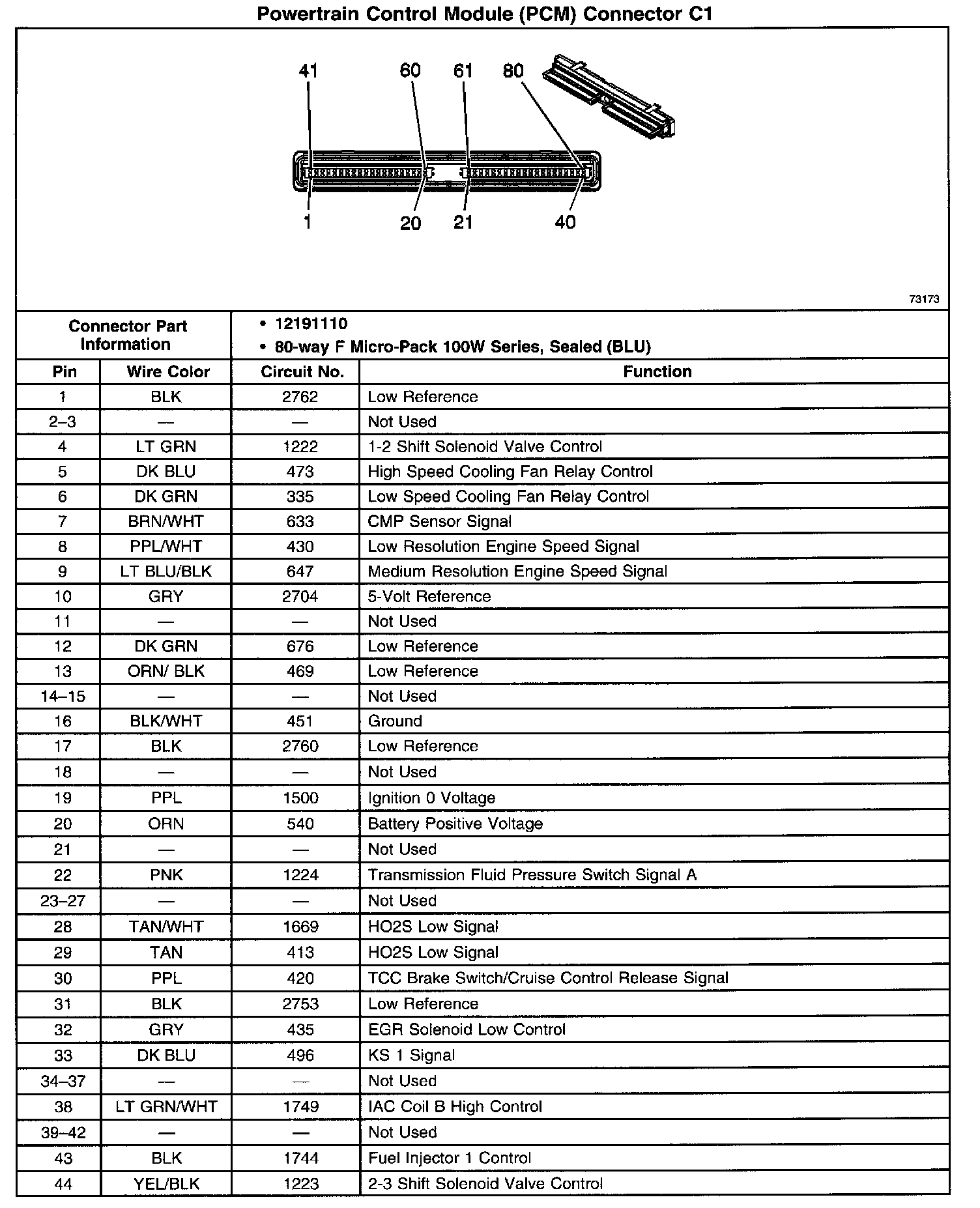 Powertrain Control Module (PCM) Connector C1 Part 1: