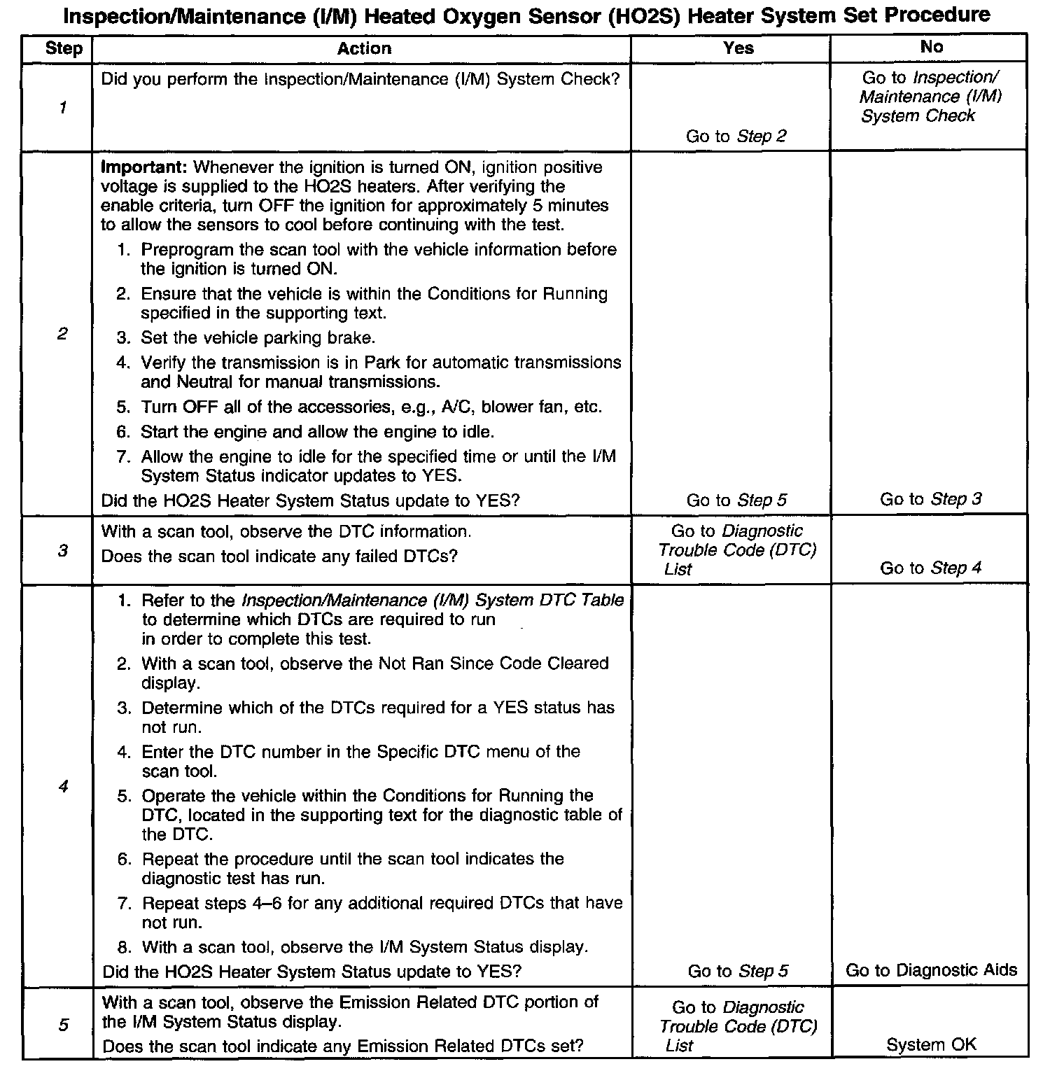 5. The I/M System Status only reports on whether or not a diagnostic has run, not the outcome of the test. If any emission related DTC sets after the tests are complete, the DTC will require diagnosis.