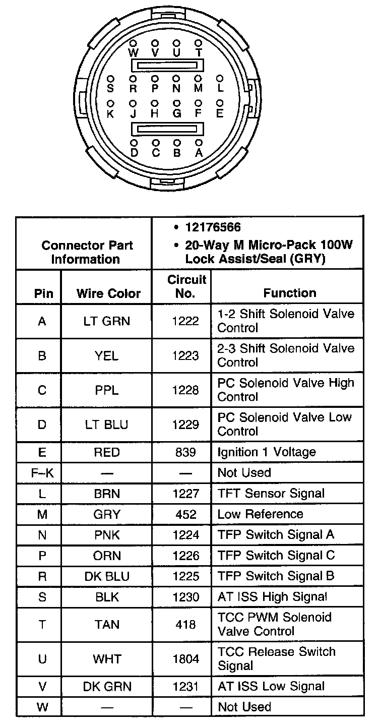 A/T Inline Harness 20-Way Connector, Transmission Side