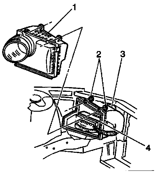 2. Install the PCM and the harness into the air cleaner housing (3).