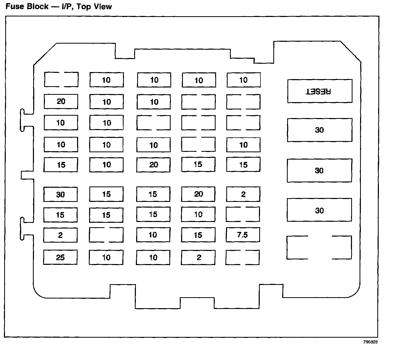 Fuse Block - I/P, Top View: