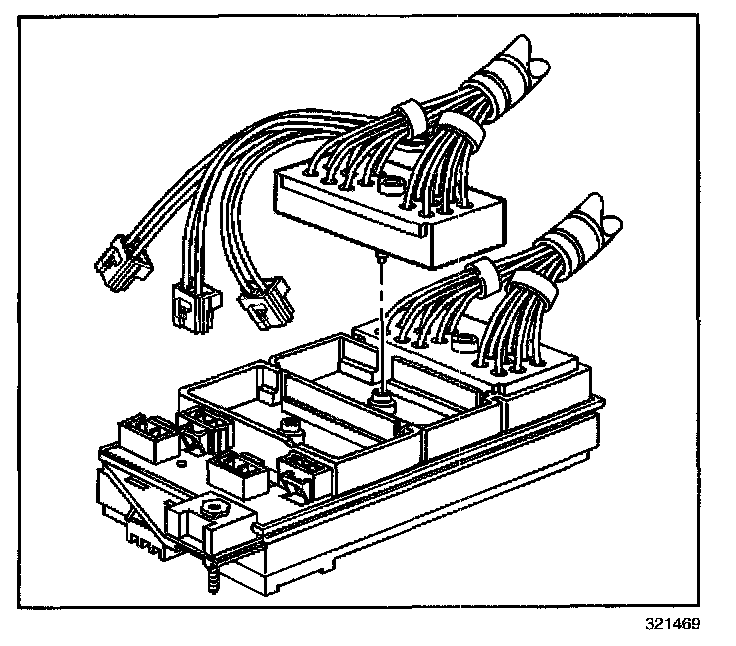 5. Tighten the bolts retaining the engine, IP and forward lamp wiring harness connectors to the junction block.