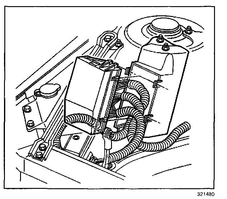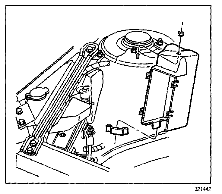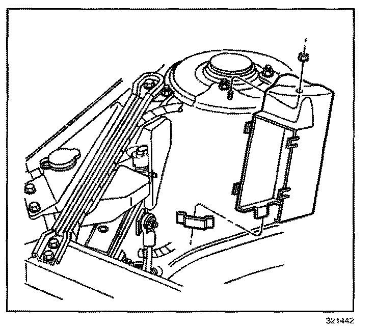 11.2. Remove the nut retaining the junction block retainer to the strut tower.