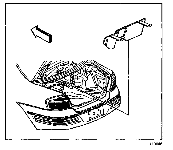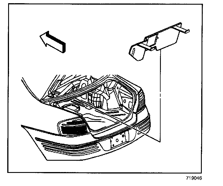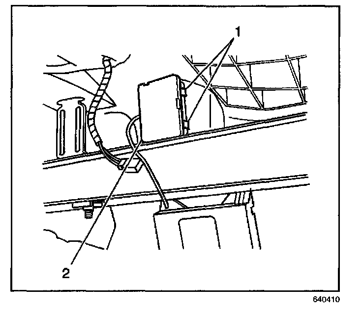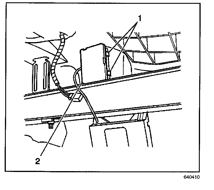 1. Snap the remote control door lock receiver module (2) into the slots in the rear compartment.
