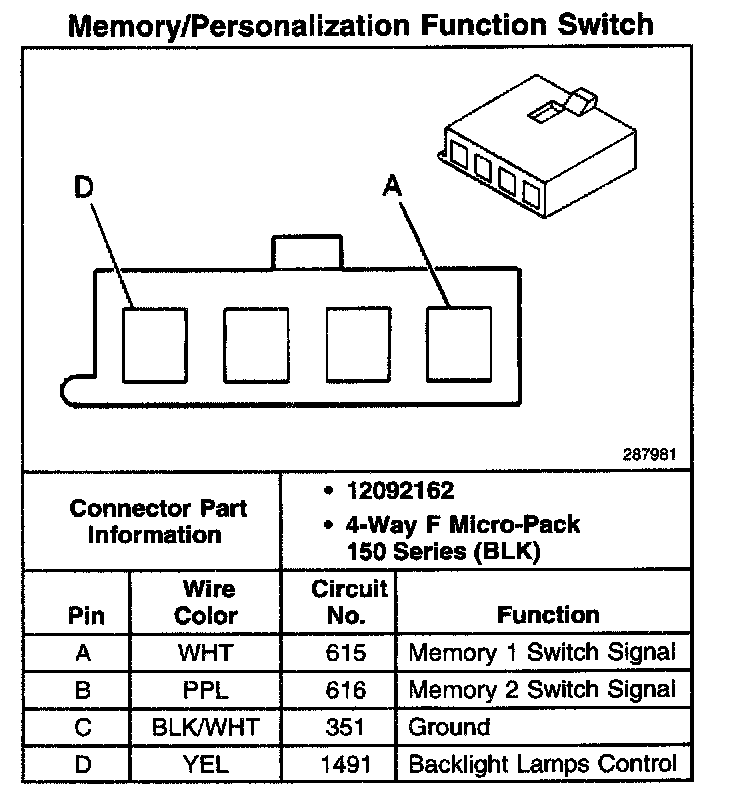 Memory/Personalization Function Switch: