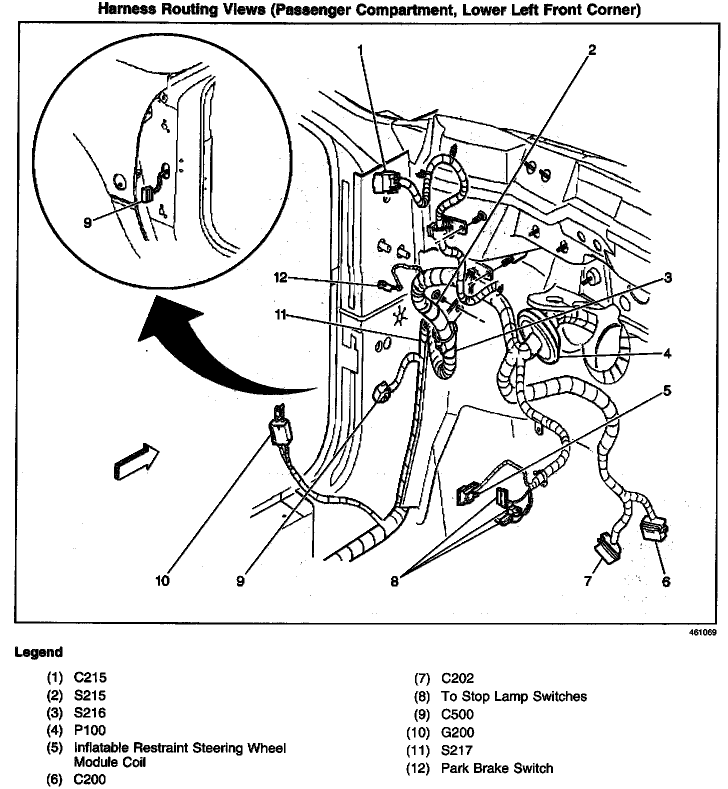 Harness Routing Views (Passenger Compartment, Lower Left Front Corner):
