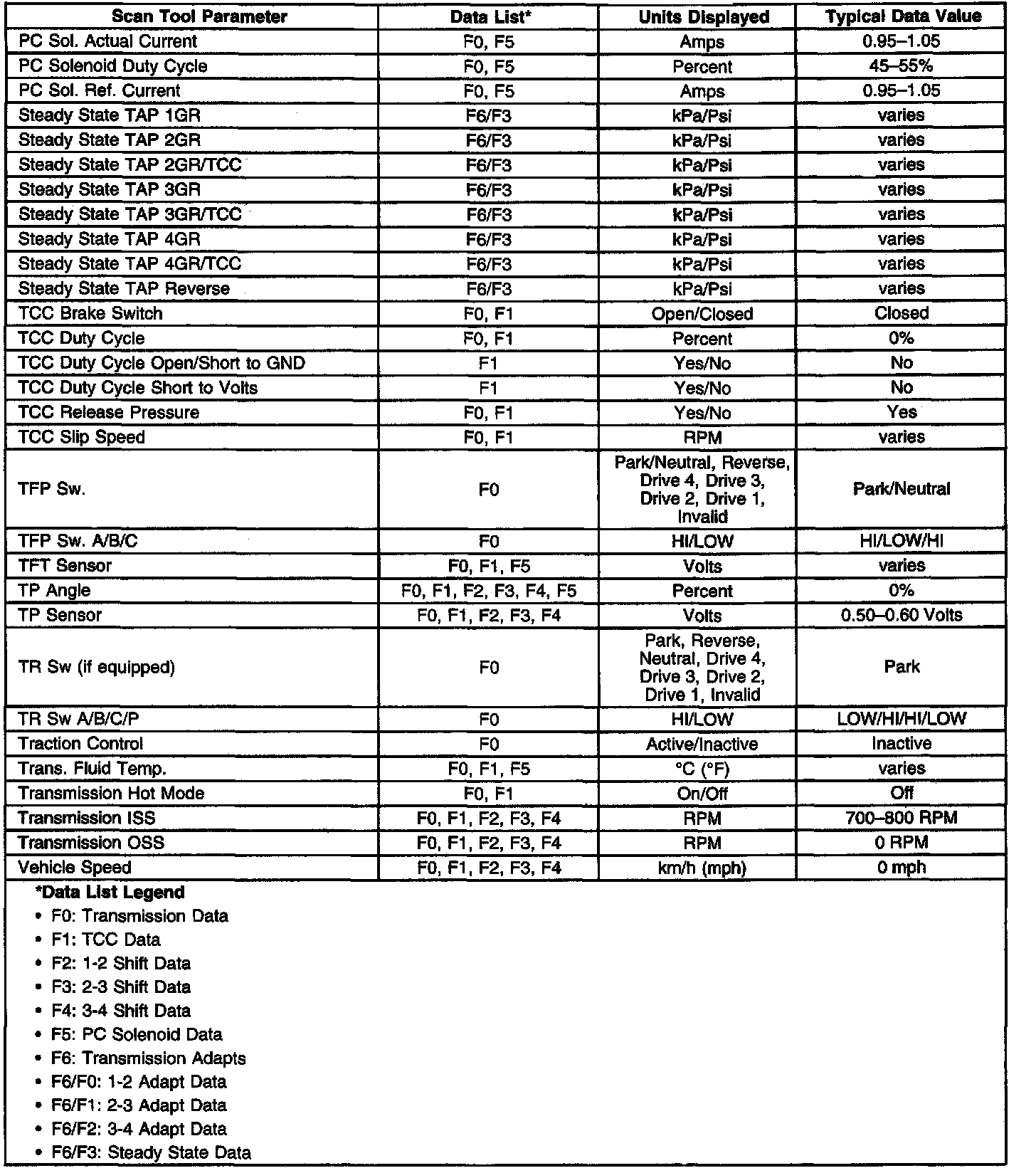 Only the parameters listed below are used for diagnosing. If a scan tool displays other parameters, the values are not recommended by General Motors for use in diagnosis. Scan tool values below were recorded under the following conditions: