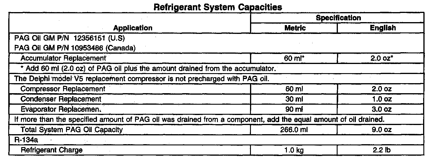 Refrigerant System Capacities - Heating, Ventilation And Air Conditioning: