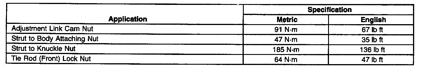 Wheel Alignment Specifications
