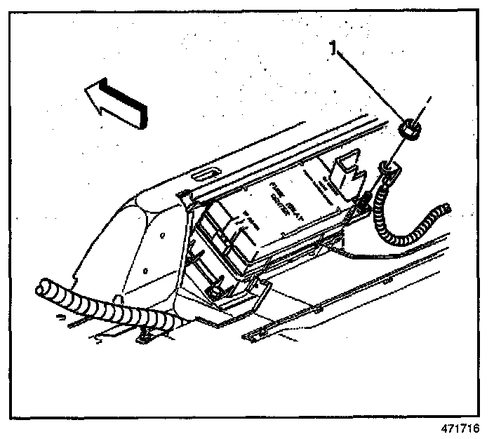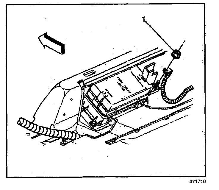 4. Remove the positive battery cable nut(1) and cable from the rear electrical center.