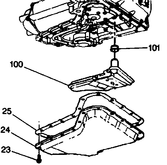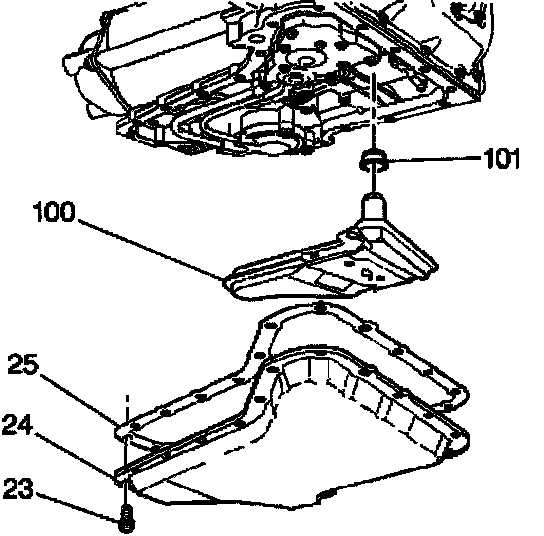 3. Install the oil pan (24) and the gasket (25) at the same time.