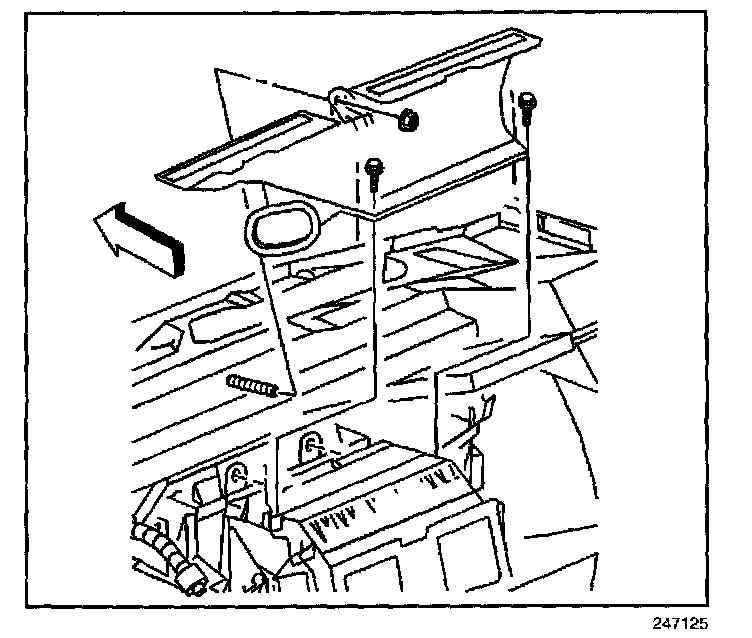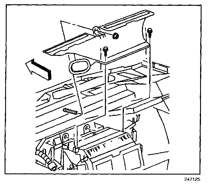 2. Remove the defroster duct retaining screws and nut.