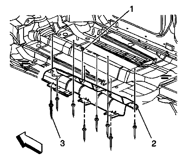 3. Remove the heat shield (2) from the floor panel in the following order: