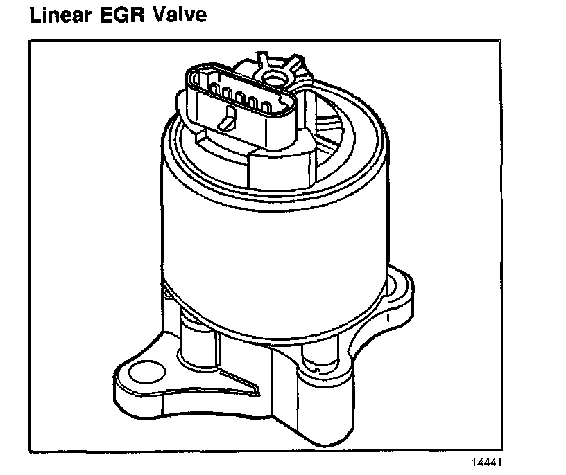 The linear EGR valve is designed to accurately supply EGR to an engine independent of intake manifold vacuum. The valve controls EGR flow from the exhaust to the intake manifold through an orifice with a PCM controlled pintle. During operation, the PCM controls pintle position by monitoring the pintle position feedback signal. The feedback signal can be monitored with a scan tool as EGR position sensor. The EGR position sensor should always be near the commanded EGR position, Desired EGR Position. The PCM uses information from the following sensors to control the pintle position: