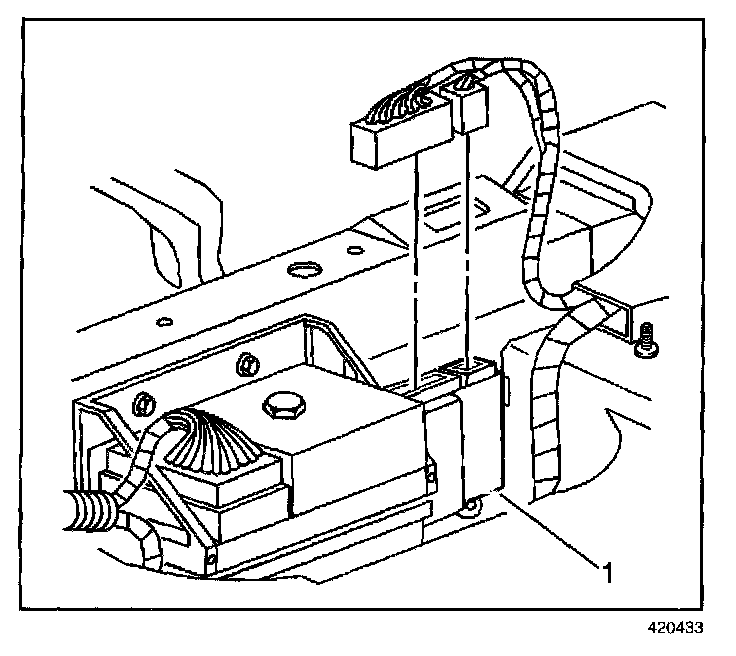 4. Remove the fastener retaining the rear door module (1).
