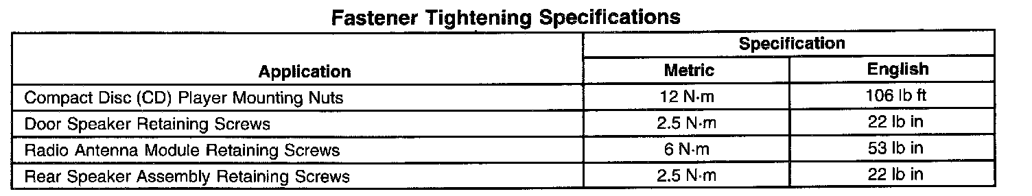 Fastener Tightening Specifications:
