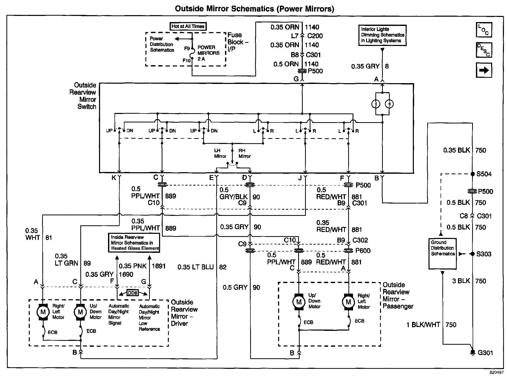 Outside Mirror Schematics: Power Mirrors: