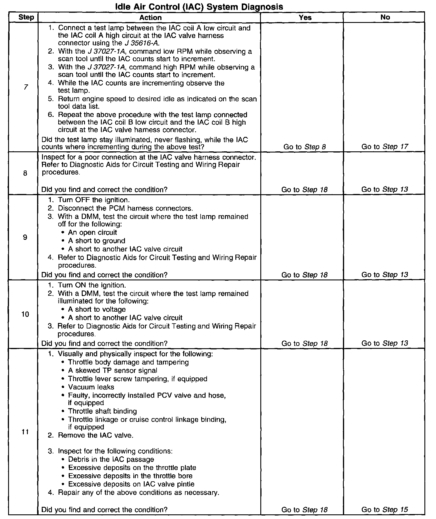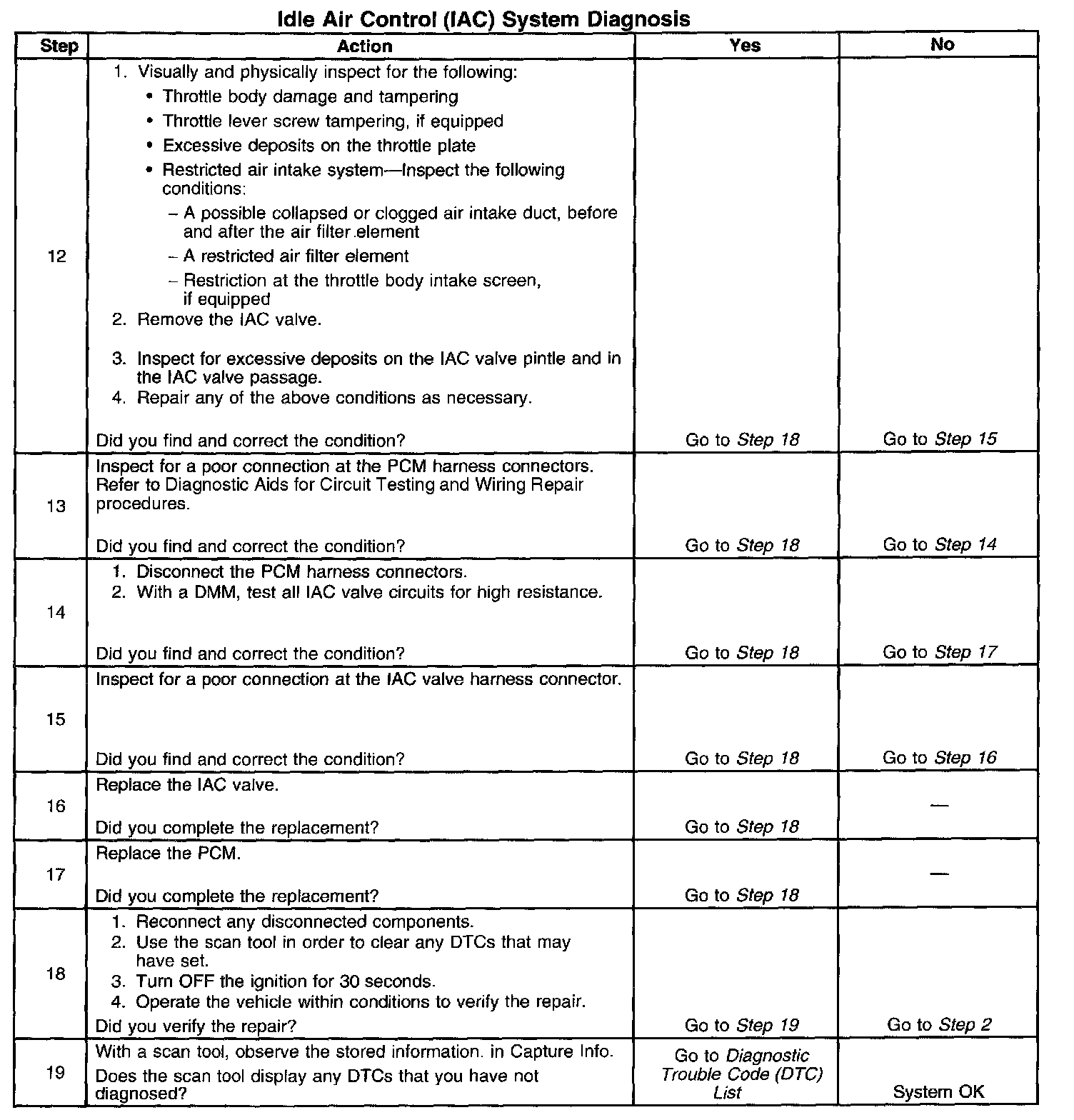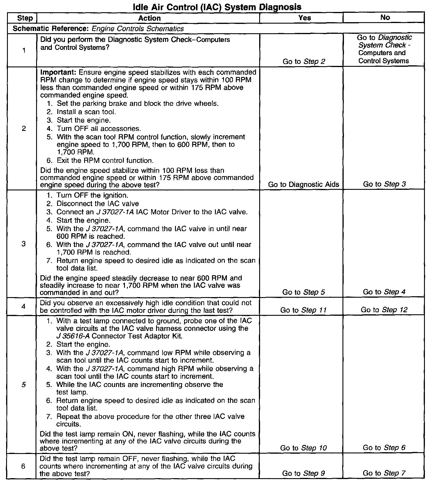 ^ A low or unstable idle condition could be caused by a non-IAC system problem that can not be overcome by the IAC valve. Refer to Symptoms - Computers and Controls Systems. Symptom Related Diagnostic Procedures