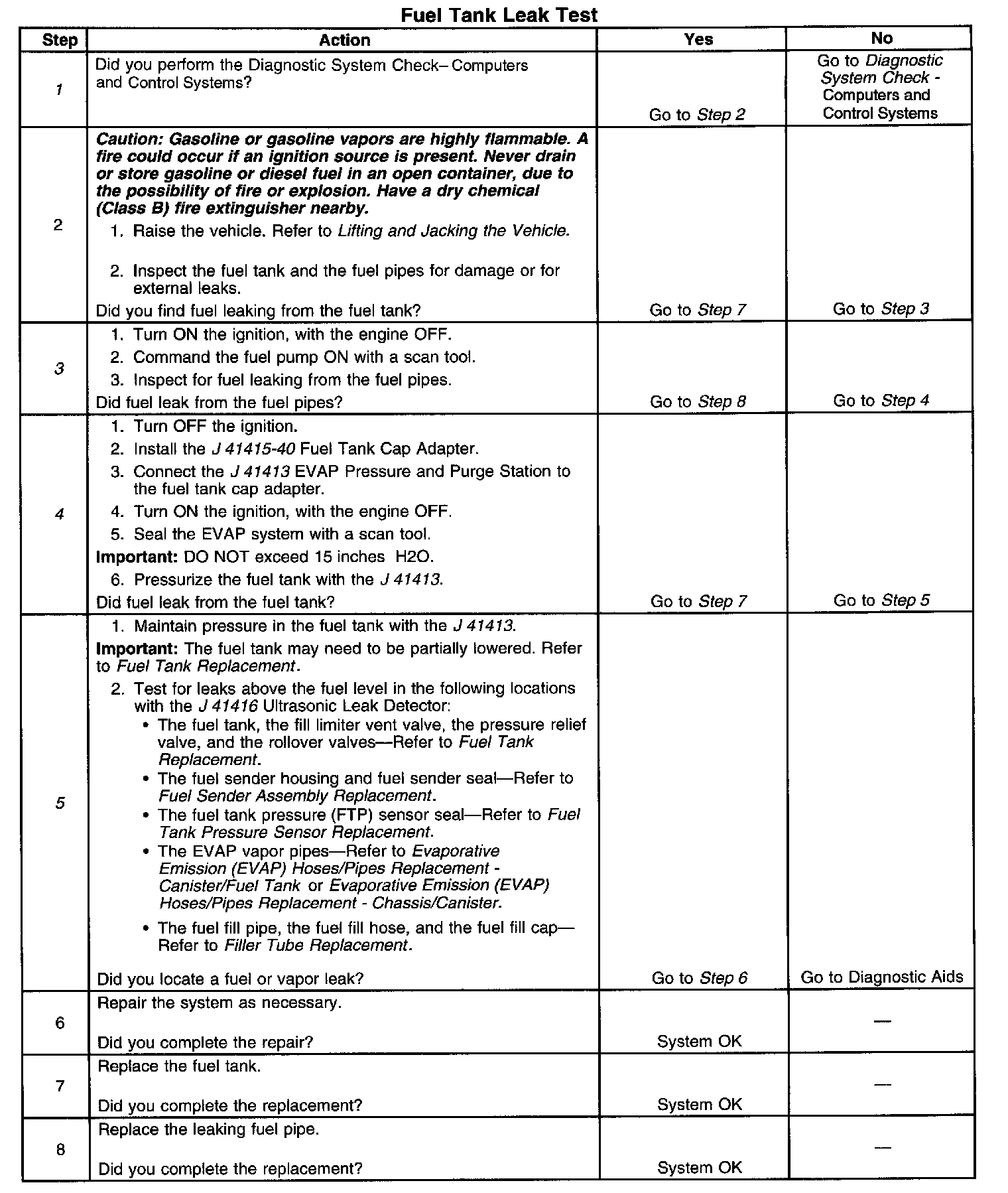 Fuel Tank: Testing and Inspection