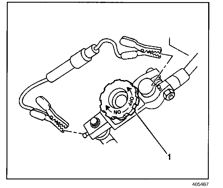 10. Turn the J 38758 knob (1) to the OFF position. The current flows through the jumper wire.