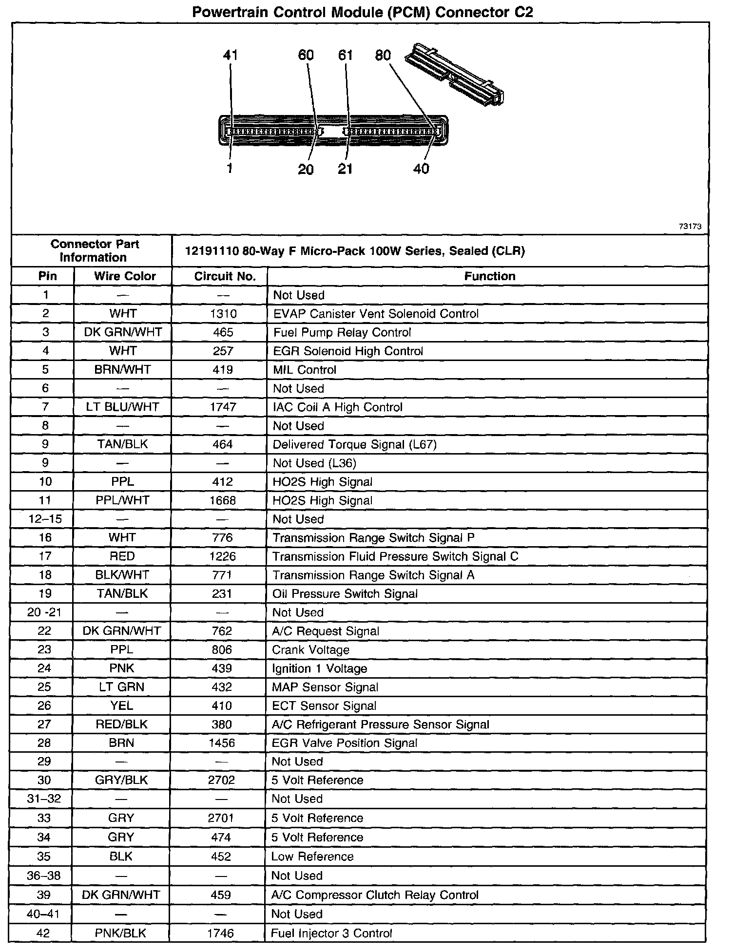Powertrain Control Module (PCM) Connector C2 Part 1: