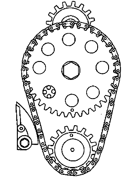 9. Assemble the timing chain on the sprockets with the timing marks as close together as possible.