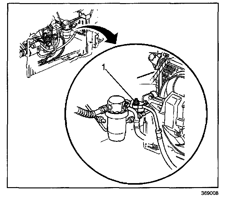 4. Remove the A/C compressor hose nut (1).