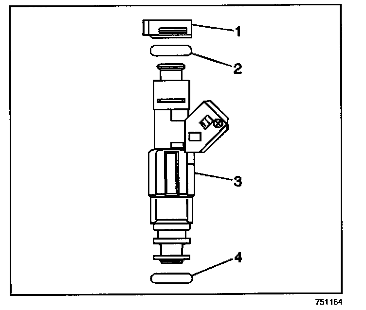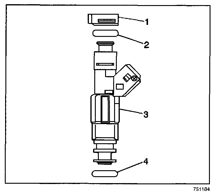5. Remove the fuel injector lower O-ring (4).