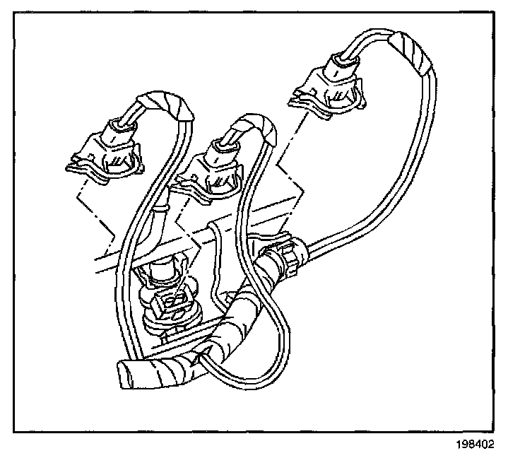 ^ When servicing the fuel rail assembly, take precautions to prevent dirt and other contaminants from entering the fuel passages. Cap the fittings and plug the holes during servicing.