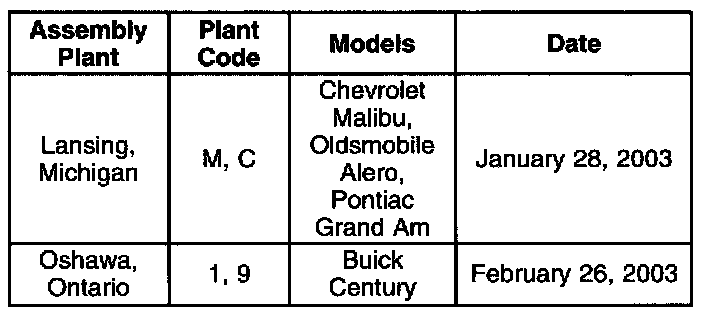 The above listed vehicles will no longer contain an engine oil level switch beginning with vehicles built on the dates shown.