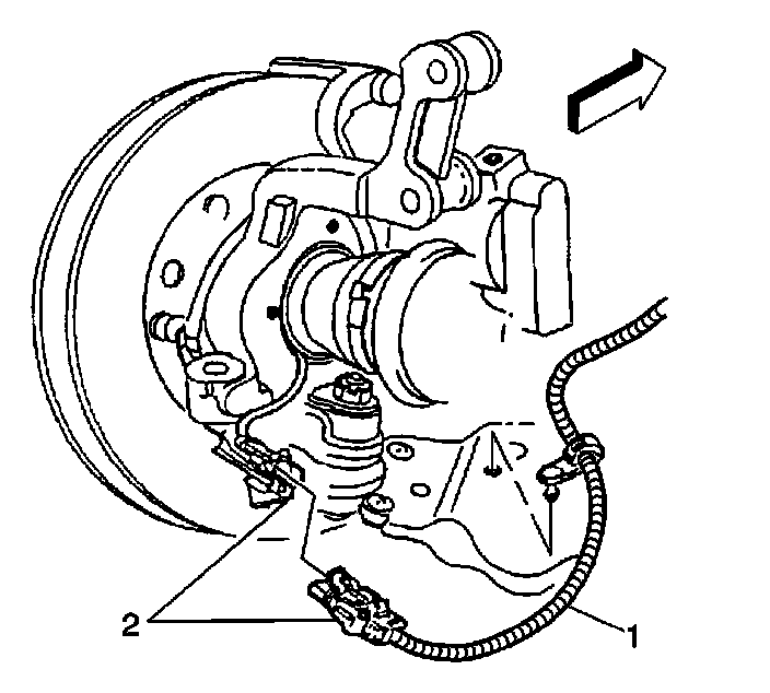 7. Connect the wheel speed sensor electrical connector (2), if equipped.