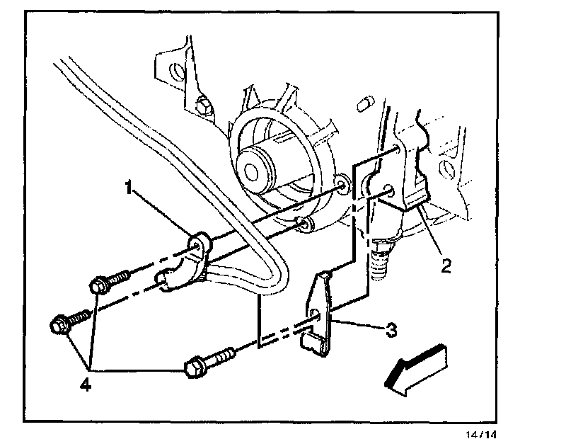 3. Install the harness retaining clip (3) and the bolt (4).