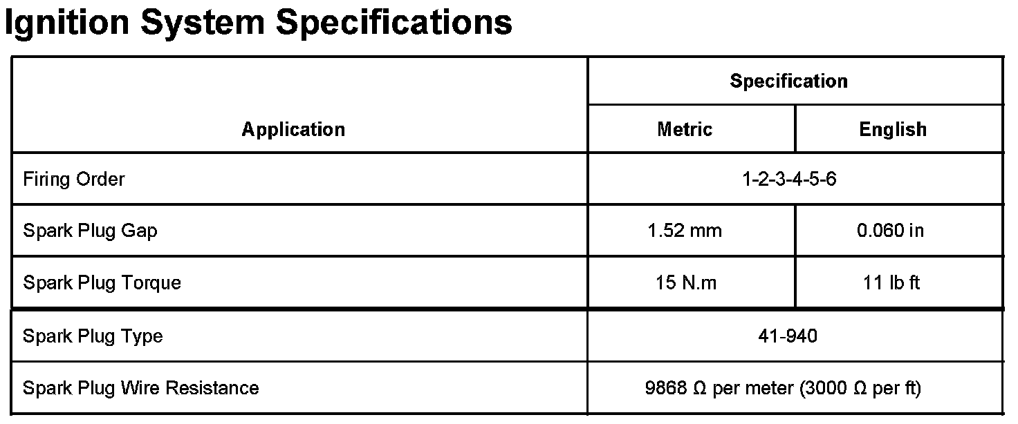 Ignition System Specifications: