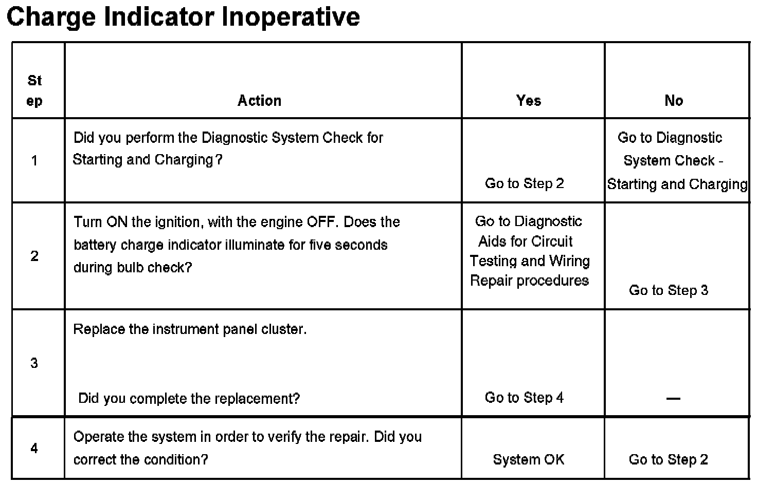 Charge Indicator Inoperative