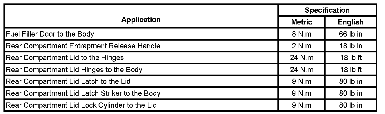 Body Rear End - Fastener Tightening Specifications