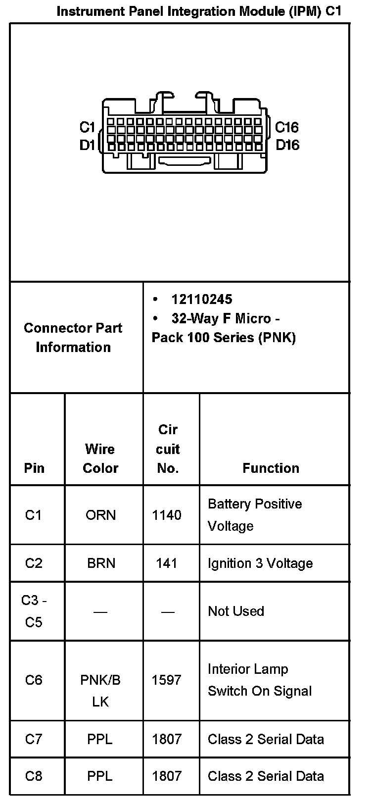 Instrument Panel Integration Module (IPM) C1 Part 2: