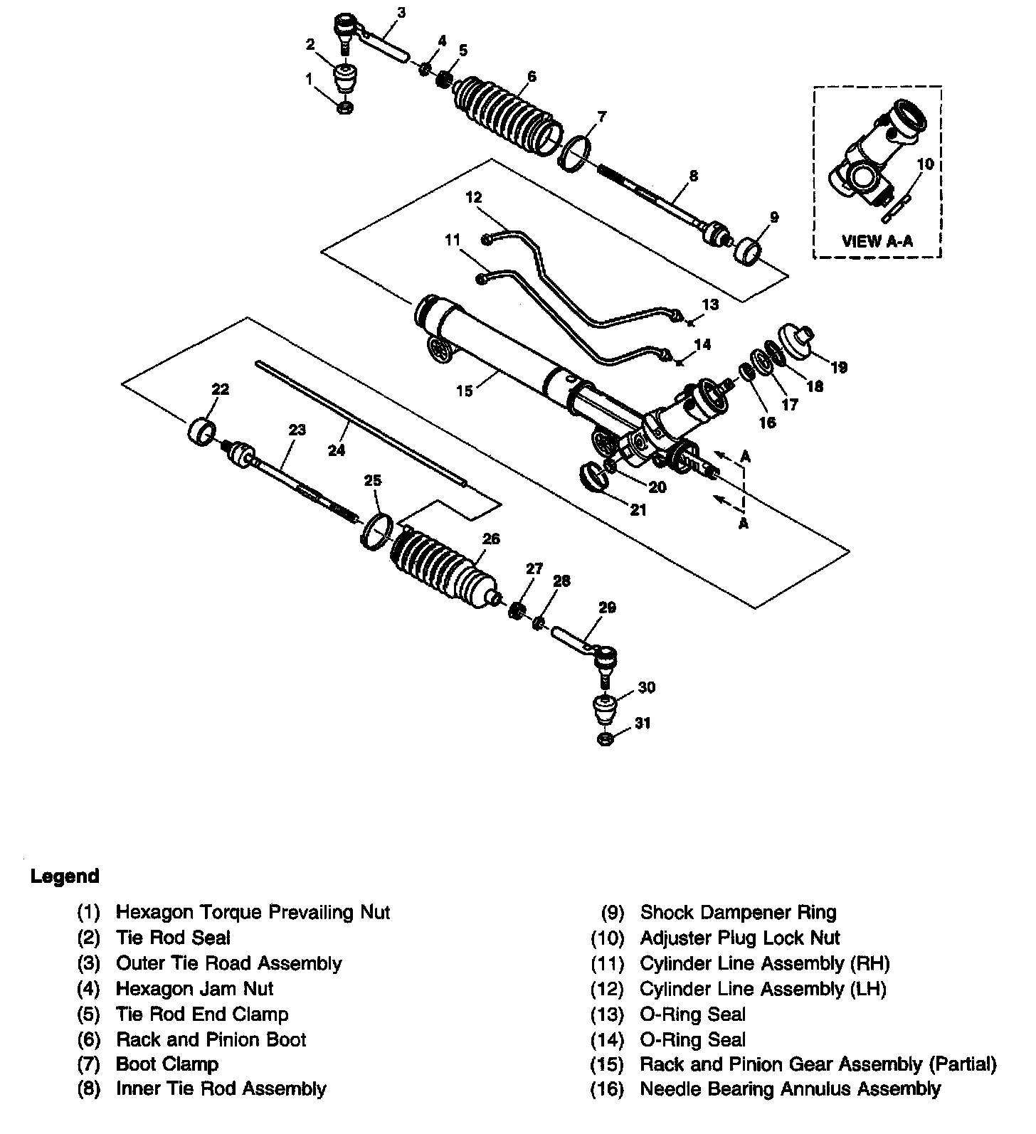 Power Steering Gear Disassembled View (Rack and Pinion)