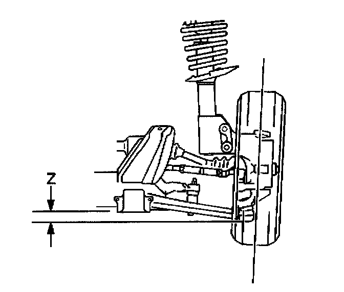 The Z height dimension measurement determines the proper ride height for the front end of the vehicle. There is no adjustment procedure. Repair may require replacement of suspension components.