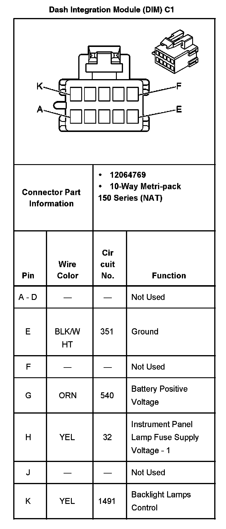 Dash Integration Module (DIM) C1: