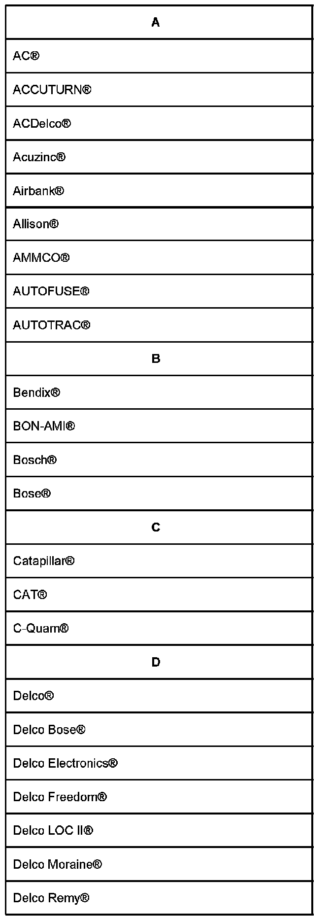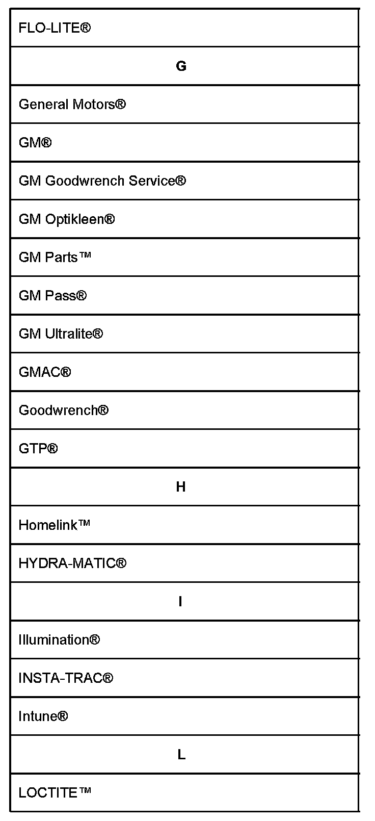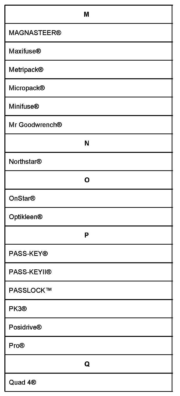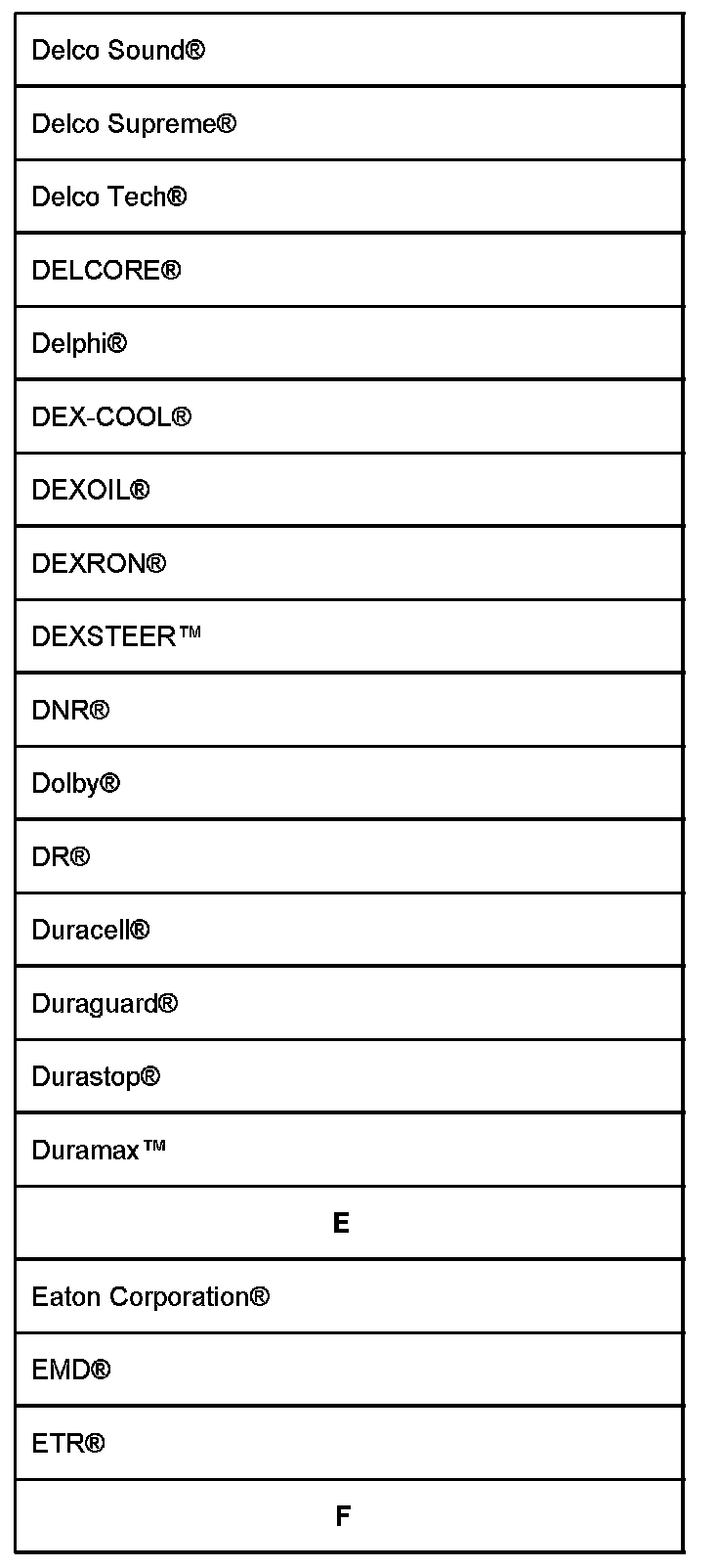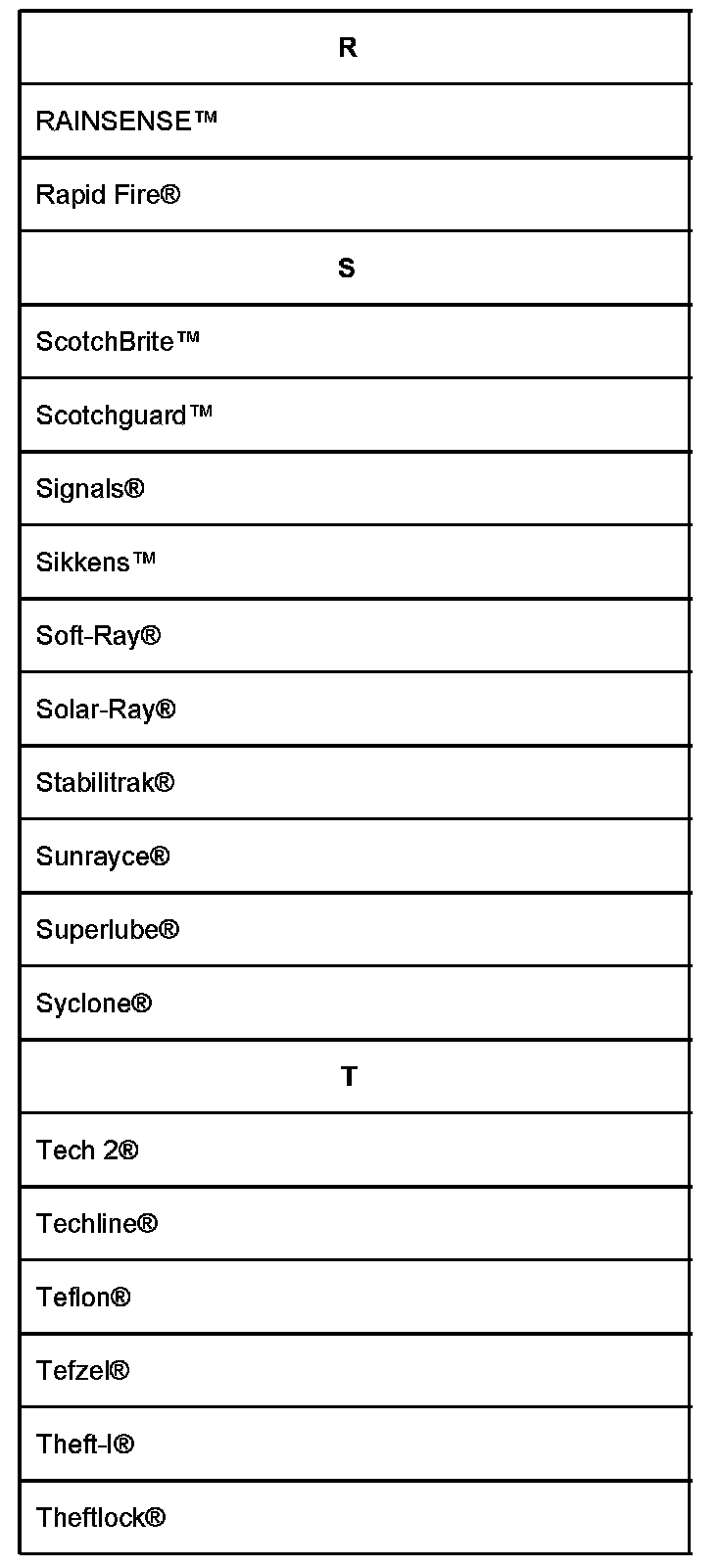 Lists shown are Registered Trademarks ((R)) or Non-Registered Trademarks ((TM)).