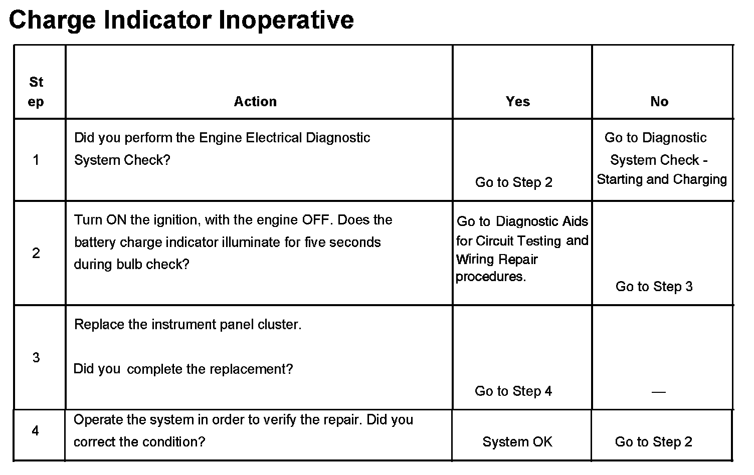 Charge Indicator Inoperative