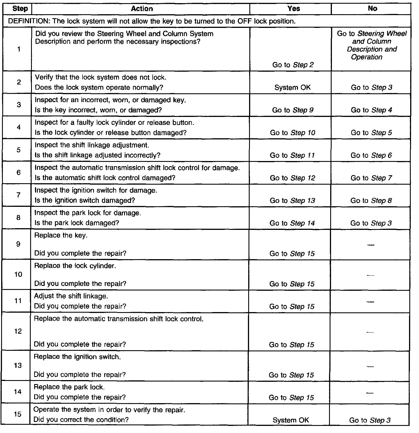 A/T Shift Lock, Lock System Does Not Lock