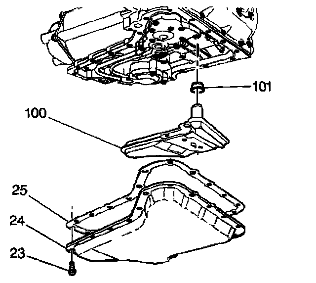 3. Install the oil pan (24) and the gasket (25) at the same time.