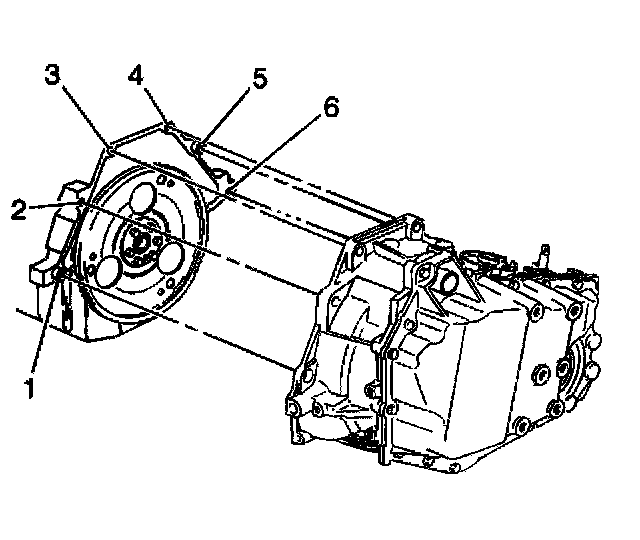6. Install the transaxle case to engine bolts (1 and 6).